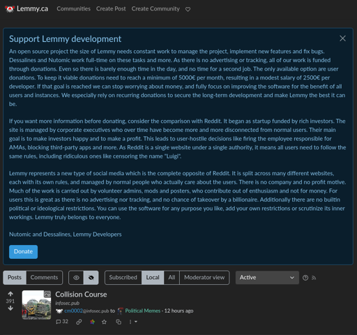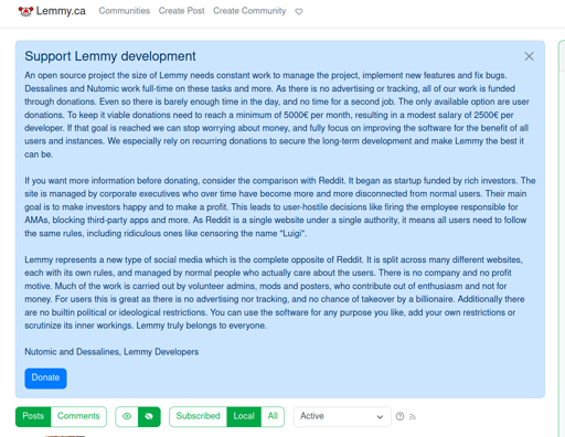 TheObviousSolution@lemmy.caEnglish · 3 months agoSupport Lemmy development ads?plus-squarelemmy.caimagemessage-square0linkfedilinkarrow-up11arrow-down10