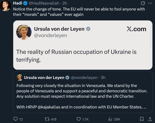 I mean so called “leftists” of so called “leftist” instances like srlpnk are already sipping the word of monsters like Kallas and von der Leyen completely uncritically, not to mention ignoring completely double standard EU have for US aggressions. I don’t even want to see what’s happening in nazi bars like shit.whatever.its.called or .world.