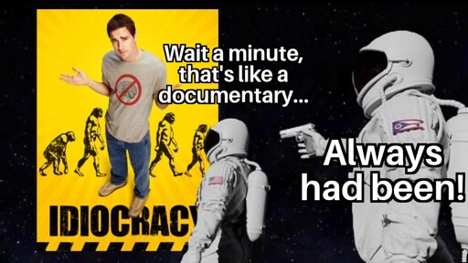 In Idiocracy, everybody is dumb. This is unrealistic, as in the past, now, and in the future, there have been, are and will be plenty of intensely intelligent people screaming the answers in our face, all while we keep fucking it up.