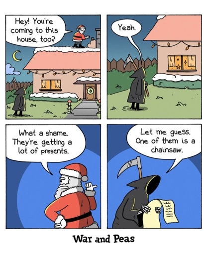 Santa: yes, actually, John. Death: huh. I have little Billy on the list