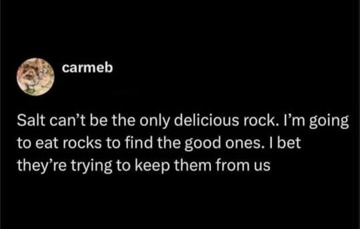 I mean, ice is technically a mineral so, that’s at least two tasty rocks