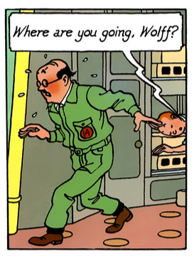 In the story, they’re running out of breathable air in their spaceship on the way back to Earth, and Wolff (who up to that point was a villain) sacrificed himself by going out into space, thus giving everyone else a chance with the remaining air.